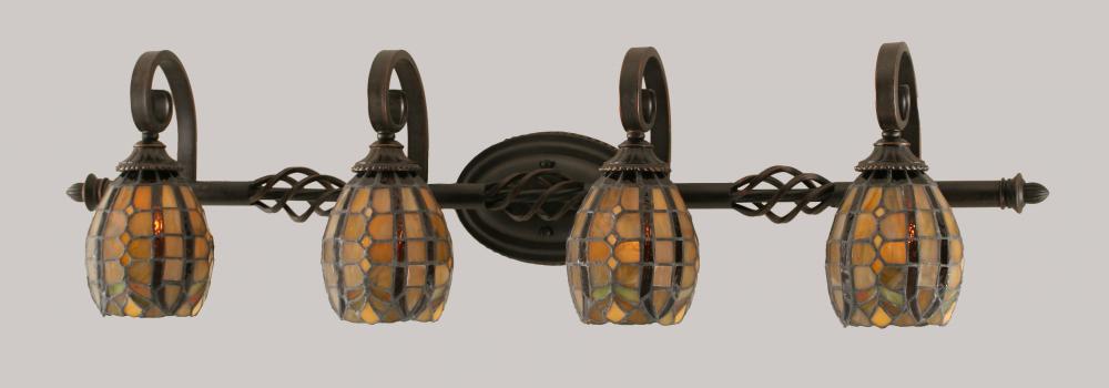 Eleganté 4 Light Bath Bar Shown In Dark Granite Finish With 5.5" Paradise Tiffany Glass