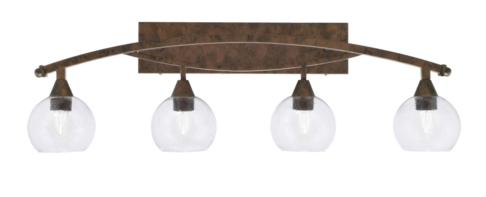 Toltec Lighting 174-BRZ-4100 Bow 4 Light Bath Bar Shown In Bronze Finish With 5.75 Clear Bubble Glass