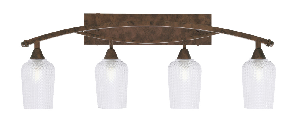 Toltec Lighting 174-BRZ-4250 Bow 4 Light Bath Bar Shown In Bronze Finish With 5 Clear Textured Glass