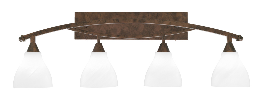 Toltec Lighting 174-BRZ-4761 Bow 4 Light Bath Bar Shown In Bronze Finish With 6.25 White Marble Glass