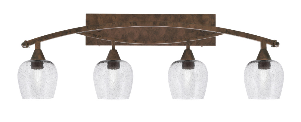 Toltec Lighting 174-BRZ-4812 Bow 4 Light Bath Bar Shown In Bronze Finish With 6 Smoke Bubble Glass