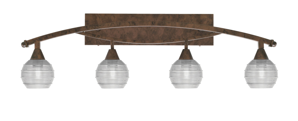 Toltec Lighting 174-BRZ-5110 Bow 4 Light Bath Bar Shown In Bronze Finish With 6 Clear Ribbed Glass