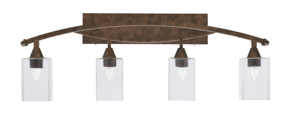 Toltec Lighting 174-BRZ-530 Bow 4 Light Bath Bar Shown In Bronze Finish With 4 Square Clear Bubble Glass