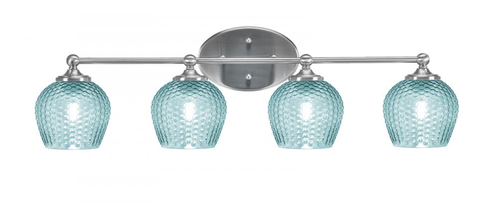 Capri 4 Light Bath Bar Shown In Brushed Nickel Finish With 6 Turquoise Textured Glass