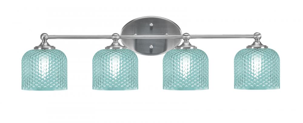 Capri 4 Light Bath Bar Shown In Brushed Nickel Finish With 6 Turquoise Textured Glass