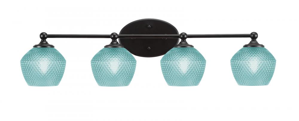 Capri 4 Light Bath Bar Shown In Matte Black Finish With 6 Turquoise Textured Glass