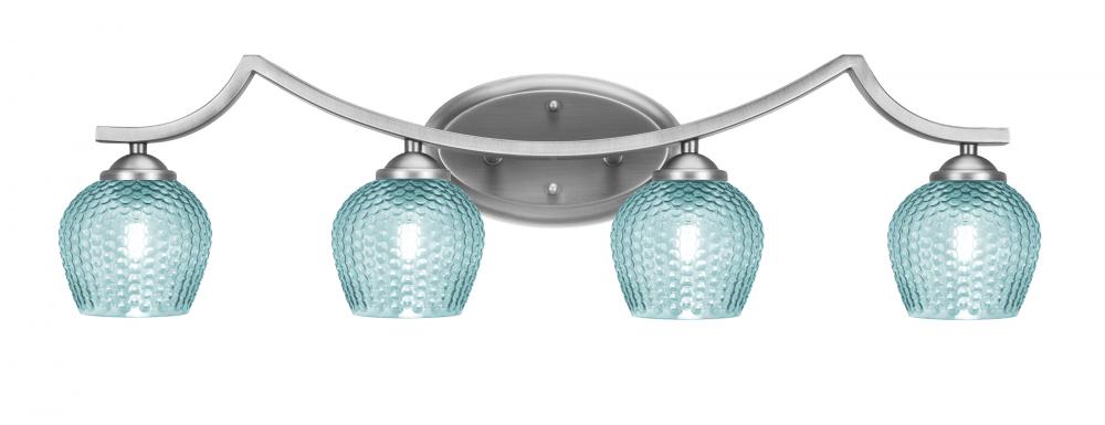 Zilo 4 Light Bath Bar Shown In Graphite Finish With 6 Turquoise Textured Glass