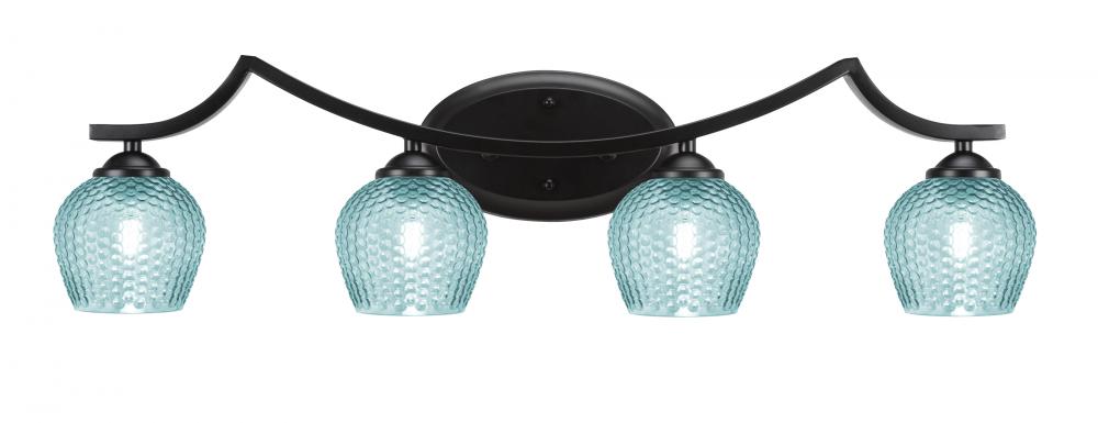 Zilo 4 Light Bath Bar Shown In Matte Black Finish With 6 Turquoise Textured Glass