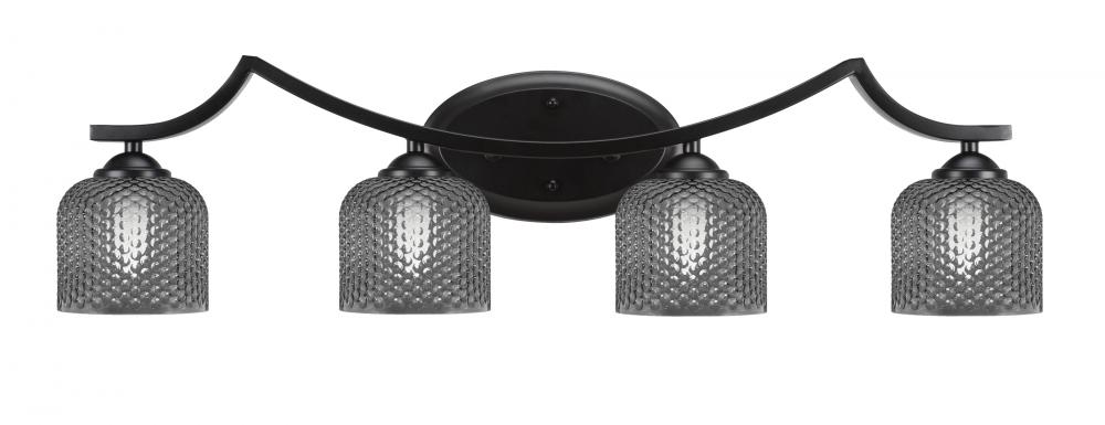 Zilo 4 Light Bath Bar Shown In Matte Black Finish With 6 Smoke Textured Glass