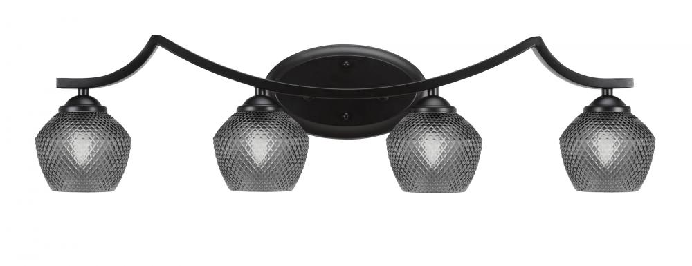 Zilo 4 Light Bath Bar Shown In Matte Black Finish With 6 Smoke Textured Glass