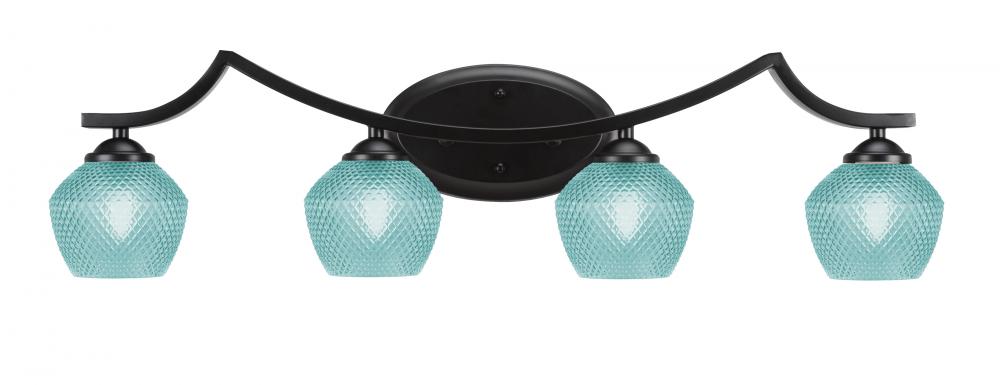 Zilo 4 Light Bath Bar Shown In Matte Black Finish With 6 Turquoise Textured Glass