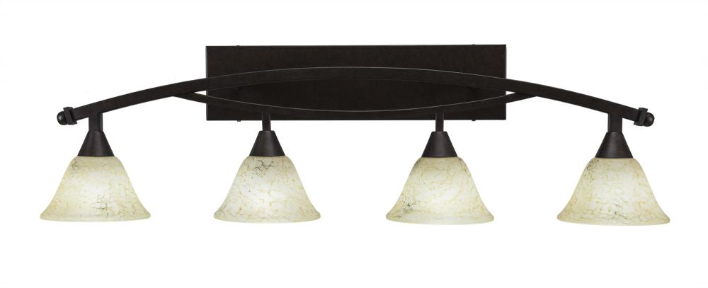 Toltec Lighting 174-BRZ-508 Bow 4 Light Bath Bar Shown In Bronze Finish with 7 Italian Marble Glass