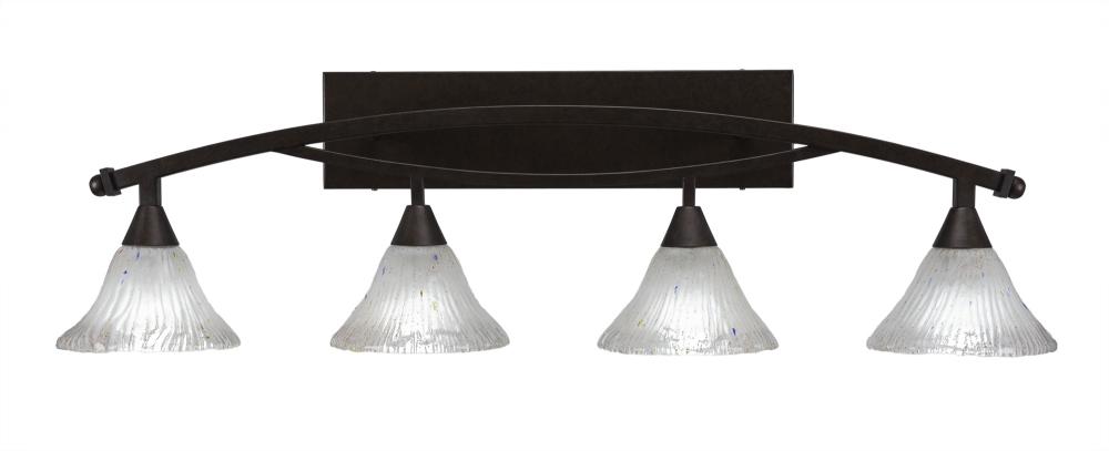 Toltec Lighting 174-BRZ-751 Bow 4 Light Bath Bar Shown In Bronze Finish with 7 Frosted Crystal Glass