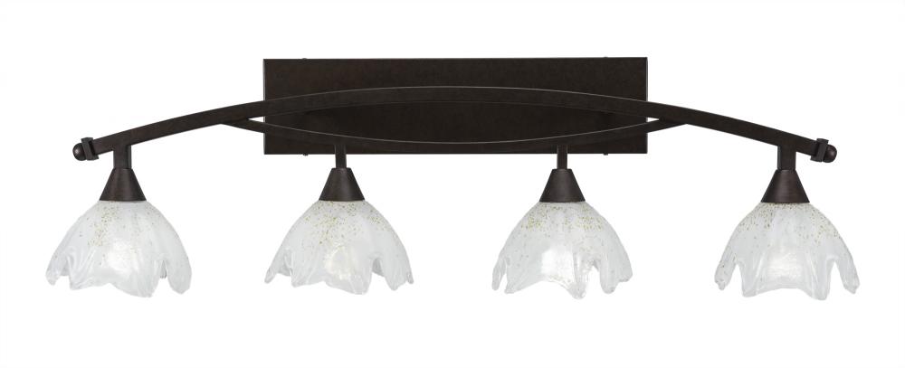 Toltec Lighting 174-BRZ-755 Bow 4 Light Bath Bar Shown In Bronze Finish with 7 Gold Ice Glass