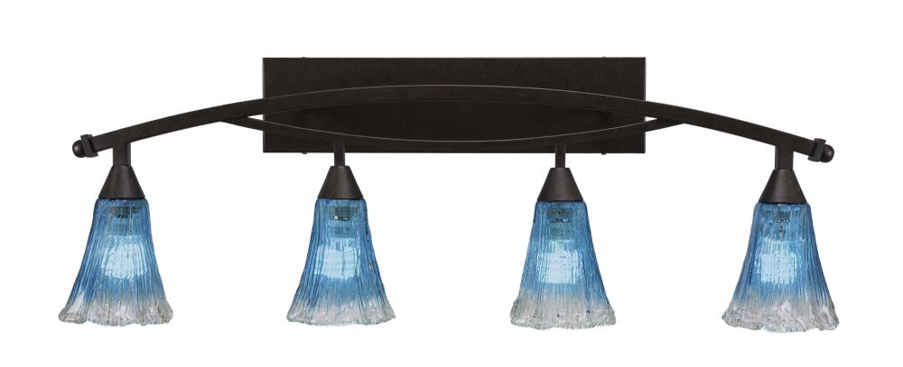 Toltec Lighting 174-BRZ-725 Bow 4 Light Bath Bar Shown In Bronze Finish with 5.5 Fluted Teal Crystal Glass