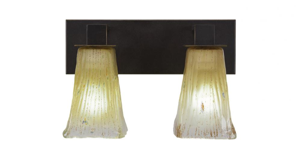 Toltec Lighting 582-DG-630 Apollo 2 Light Bath Bar Shown In Dark Granite Finish With 5 Square Amber Crystal Glass