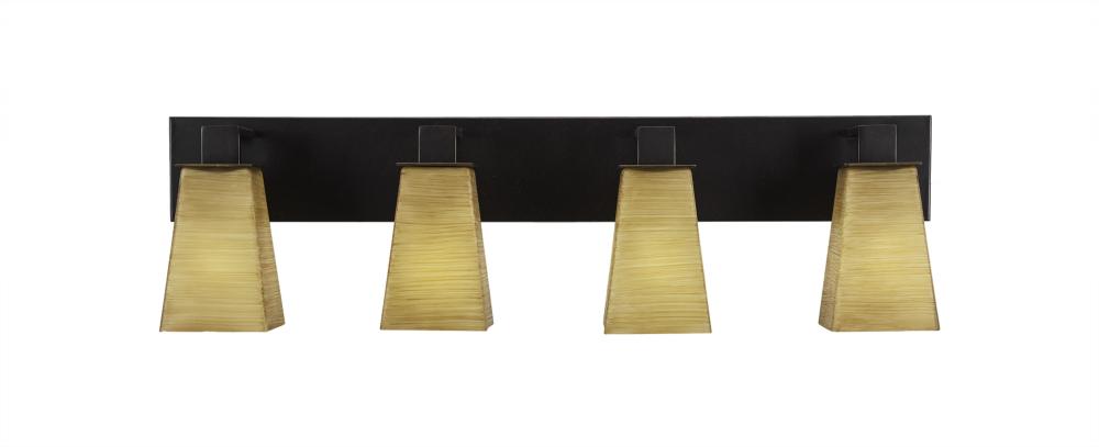 Toltec Lighting 584-DG-670 Apollo 4 Light Bath Bar Shown In Dark Granite Finish With 5 Square Cayenne Linen Glass