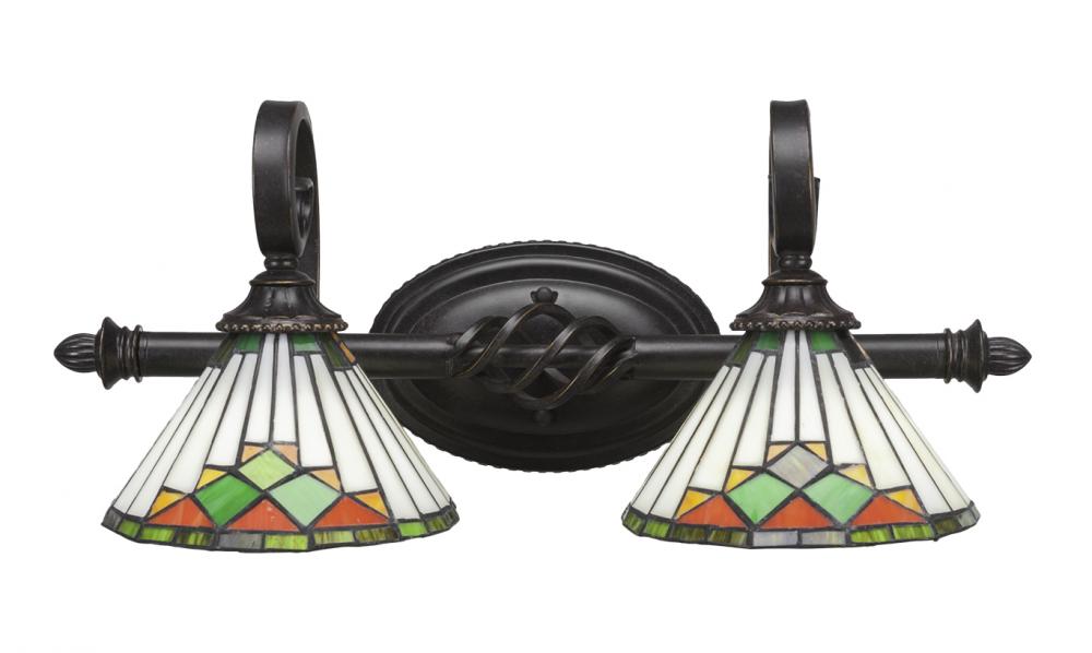 Elegant? 2 Light Bath Bar Shown In Dark Granite Finish With 7 Green Sunray Art Glass
