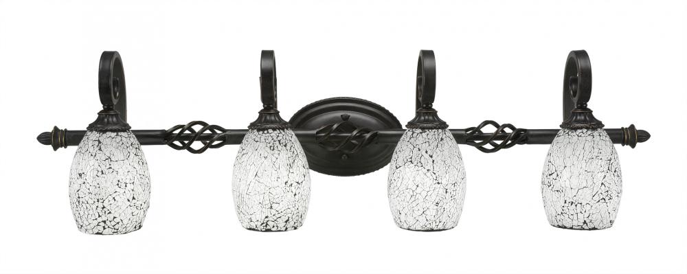 Toltec Lighting 164-DG-4165 Elegant? 4 Light Bath Bar Shown In Dark Granite Finish With 5 Black Fusion Glass