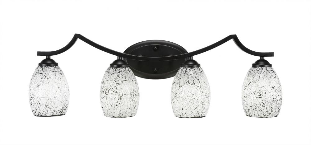 Toltec Lighting 554-MB-4165 Zilo 4 Light Bath Bar Shown In Matte Black Finish With 5 Black Fusion Glass