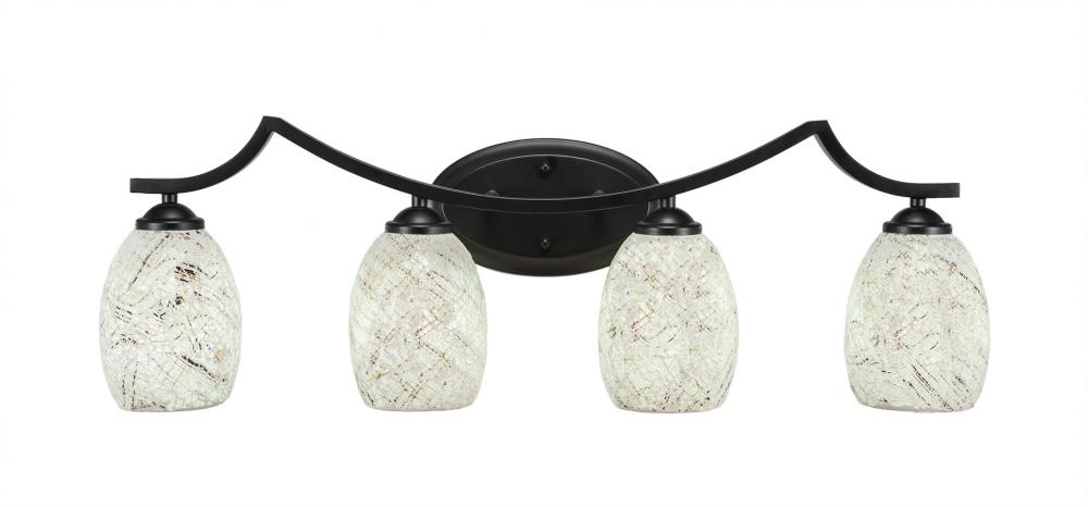 Toltec Lighting 554-MB-5054 Zilo 4 Light Bath Bar Shown In Matte Black Finish With 5 Natural Fusion Glass
