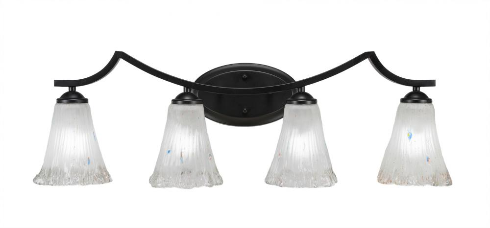 Toltec Lighting 554-MB-721 Zilo 4 Light Bath Bar Shown In Matte Black Finish With 5.5 Fluted Frosted Crystal Glass
