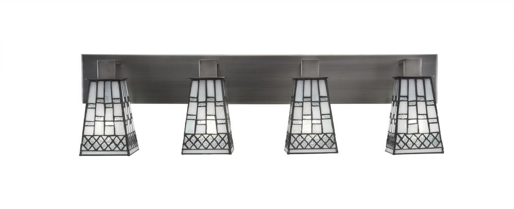 Toltec Lighting 584-GP-9104 Apollo 4 Light Bath Bar Shown In Graphite Finish With 5 Square Pewter Art Glass