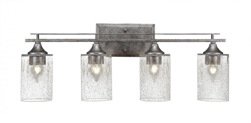 Toltec Lighting 134-AS-300 Uptowne 4 Light Bath Bar Shown In Aged Silver Finish With 4? Clear Bubble Glass