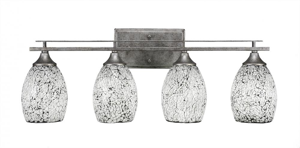 Toltec Lighting 134-AS-4165 Uptowne 4 Light Bath Bar Shown In Aged Silver Finish With 5? Black Fusion Glass