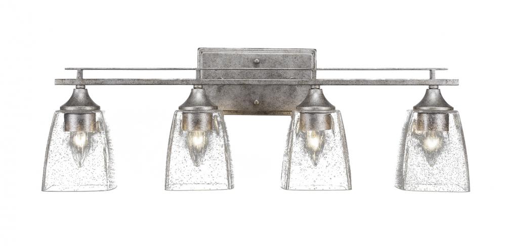 Toltec Lighting 134-AS-461 Uptowne 4 Light Bath Bar Shown In Aged Silver Finish With 4.5? Square Clear Bubble Glass