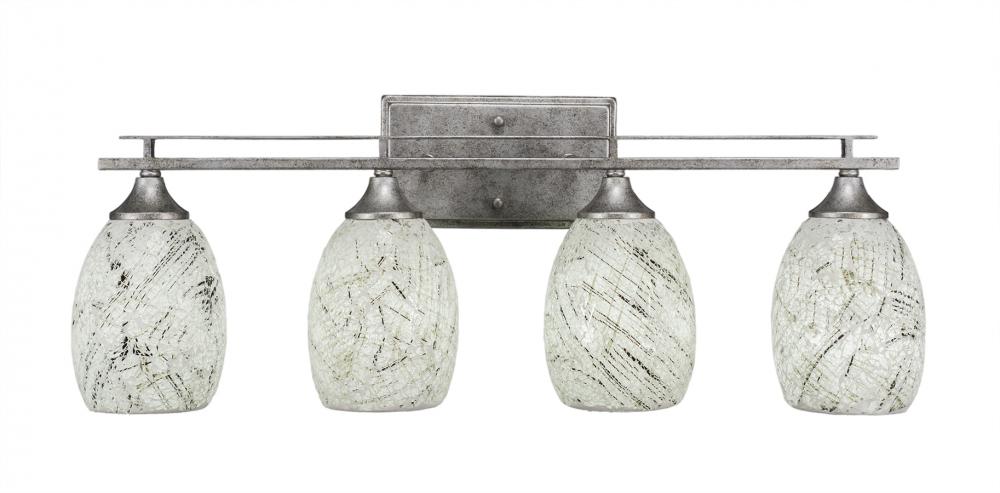 Toltec Lighting 134-AS-5054 Uptowne 4 Light Bath Bar Shown In Aged Silver Finish With 5? Natural Fusion Glass