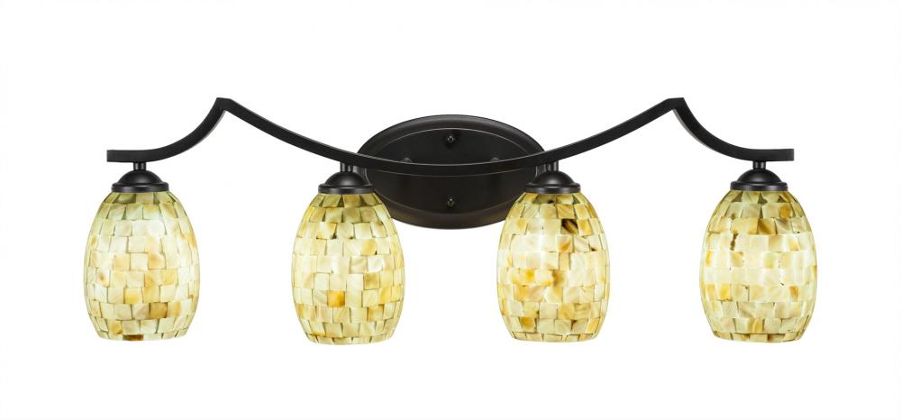 Toltec Lighting 554-MB-406 Zilo 4 Light Bath Bar Shown In Matte Black Finish With 5 Ivory Glaze Seashell Glass