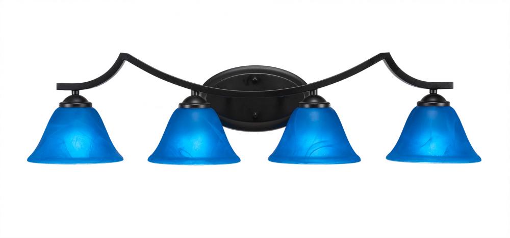 Toltec Lighting 554-MB-4155 Zilo 4 Light Bath Bar Shown In Matte Black Finish With 7 Blue Italian Glass