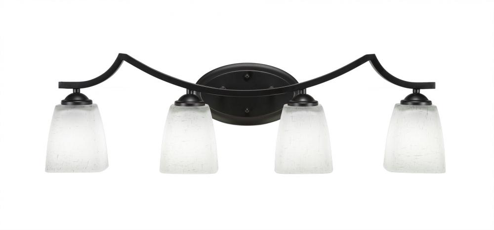 Toltec Lighting 554-MB-460 Zilo 4 Light Bath Bar Shown In Matte Black Finish With 4.5 Square White Muslin Glass