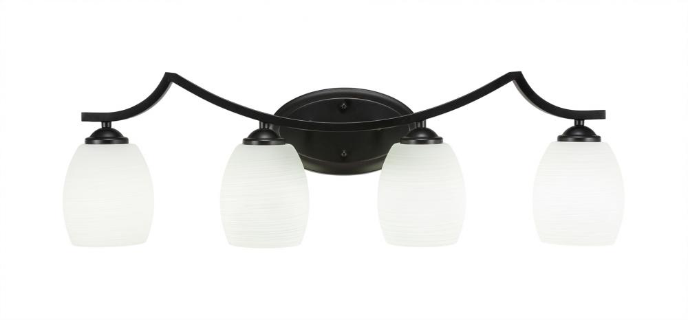 Toltec Lighting 554-MB-615 Zilo 4 Light Bath Bar Shown In Matte Black Finish With 5 White Linen Glass