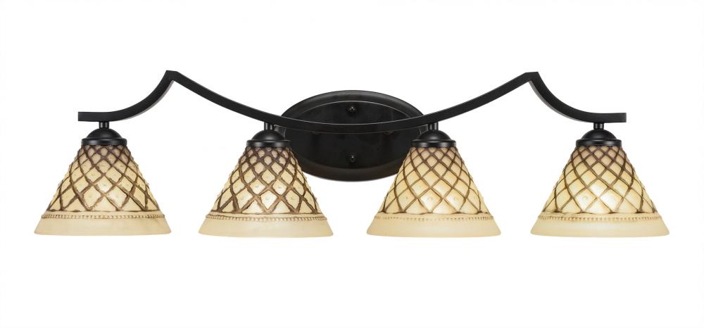 Toltec Lighting 554-MB-7185 Zilo 4 Light Bath Bar Shown In Matte Black Finish With 7 Chocolate Icing Glass