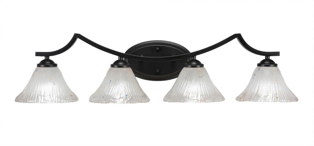 Toltec Lighting 554-MB-751 Zilo 4 Light Bath Bar Shown In Matte Black Finish With 7 Frosted Crystal Glass