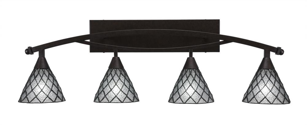 Toltec Lighting 174-BRZ-9185 Bow 4 Light Bath Bar Shown In Bronze Finish with 7 Diamond Ice Art Glass