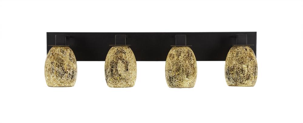 Toltec Lighting 584-DG-4175 Apollo 4 Light Bath Bar Shown In Dark Granite Finish With 5.5 Gold Fusion Glass