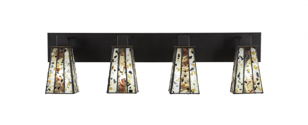 Toltec Lighting 584-DG-9564 Apollo 4 Light Bath Bar Shown In Dark Granite Finish With 5 Square Fiesta Art Glass