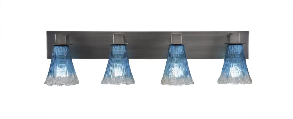 Toltec Lighting 584-GP-725 Apollo 4 Light Bath Bar Shown In Graphite Finish With 5.5 Fluted Teal Crystal Glass