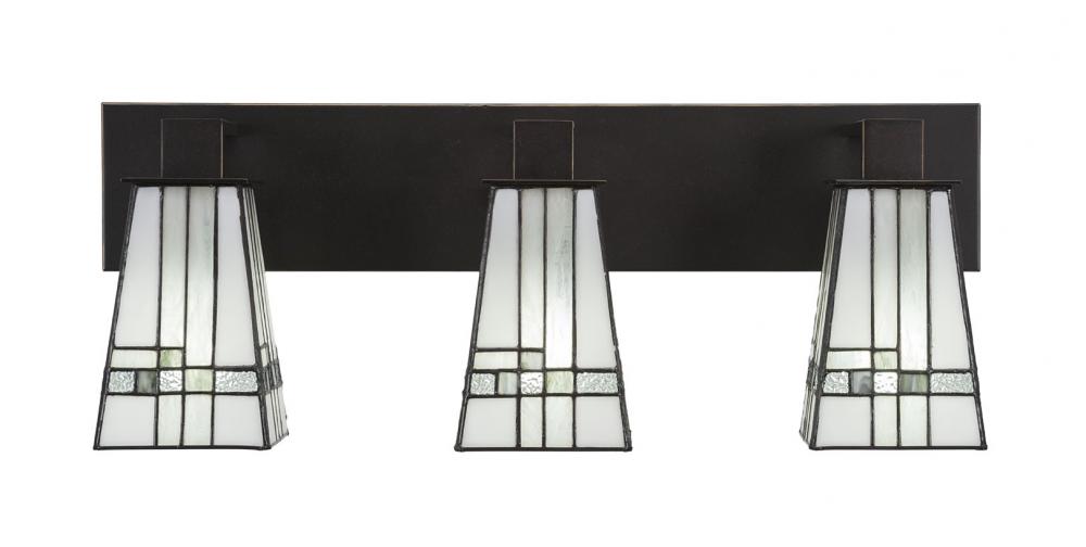 Toltec Lighting 583-DG-9554 Apollo 3 Light Bath Bar Shown In Dark Granite Finish With 5 Square New Deco Art Glass