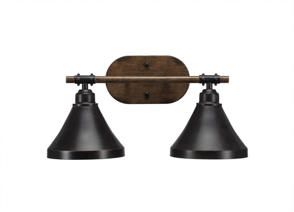 Toltec Lighting 1752-410-DG Blacksmith 2 Light Bath Bar Shown In Painted Wood-look Metal & Dark Granite Finish With 7 Dark Granite Metal Shades