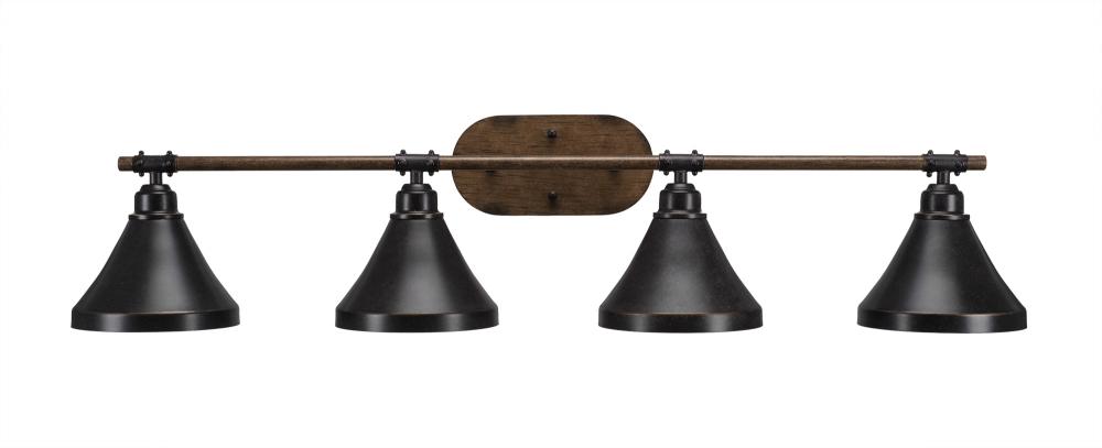 Toltec Lighting 1754-410-DG Blacksmith 4 Light Bath Bar Shown In Painted Wood-look Metal & Dark Granite Finish With 7 Dark Granite Metal Shades