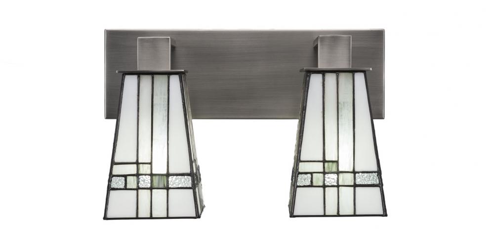 Toltec Lighting 582-GP-9554 Apollo 2 Light Bath Bar Shown In Graphite Finish With 5 Square New Deco Art Glass