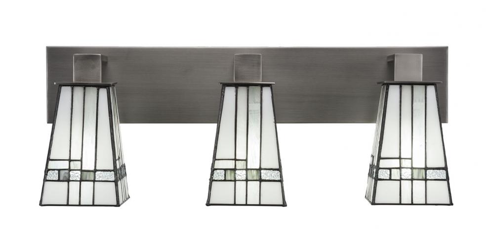 Toltec Lighting 583-GP-9554 Apollo 3 Light Bath Bar Shown In Graphite Finish With 5 Square New Deco Art Glass