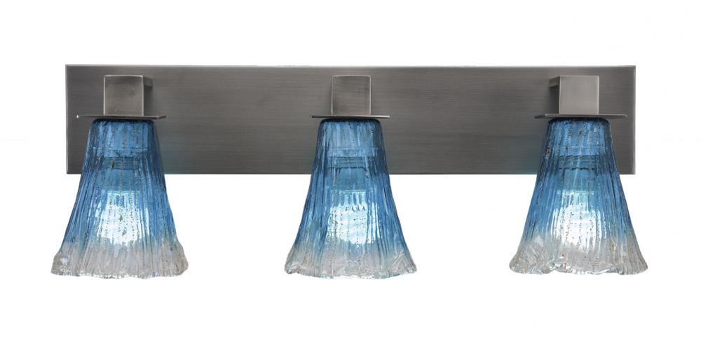 Toltec Lighting 583-GP-725 Apollo 3 Light Bath Bar Shown In Graphite Finish With 5.5 Fluted Teal Crystal Glass