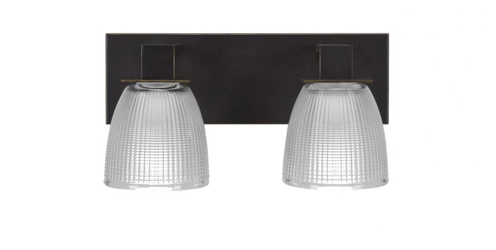Toltec Lighting 582-DG-500 Apollo 2 Light Bath Bar Shown In Dark Granite Finish With 5 Clear Ribbed Glass