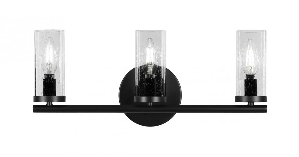 Toltec Lighting 2813-MB-800B Trinity 3 Light Bath Bar Shown In Matte Black Finish With 2.5? Clear Bubble Glass