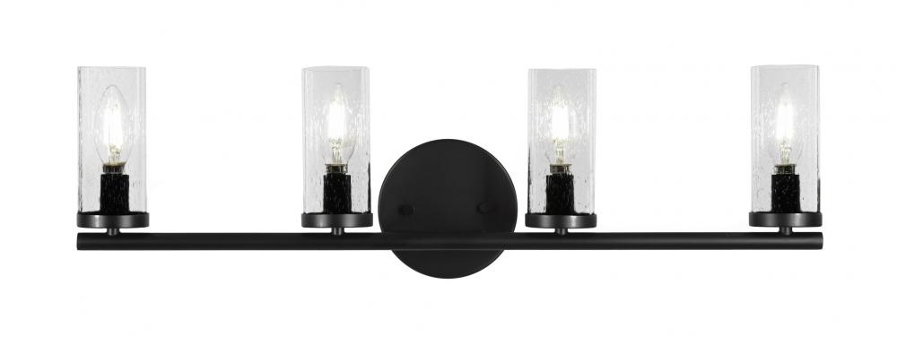 Toltec Lighting 2814-MB-800B Trinity 4 Light Bath Bar Shown In Matte Black Finish With 2.5? Clear Bubble Glass